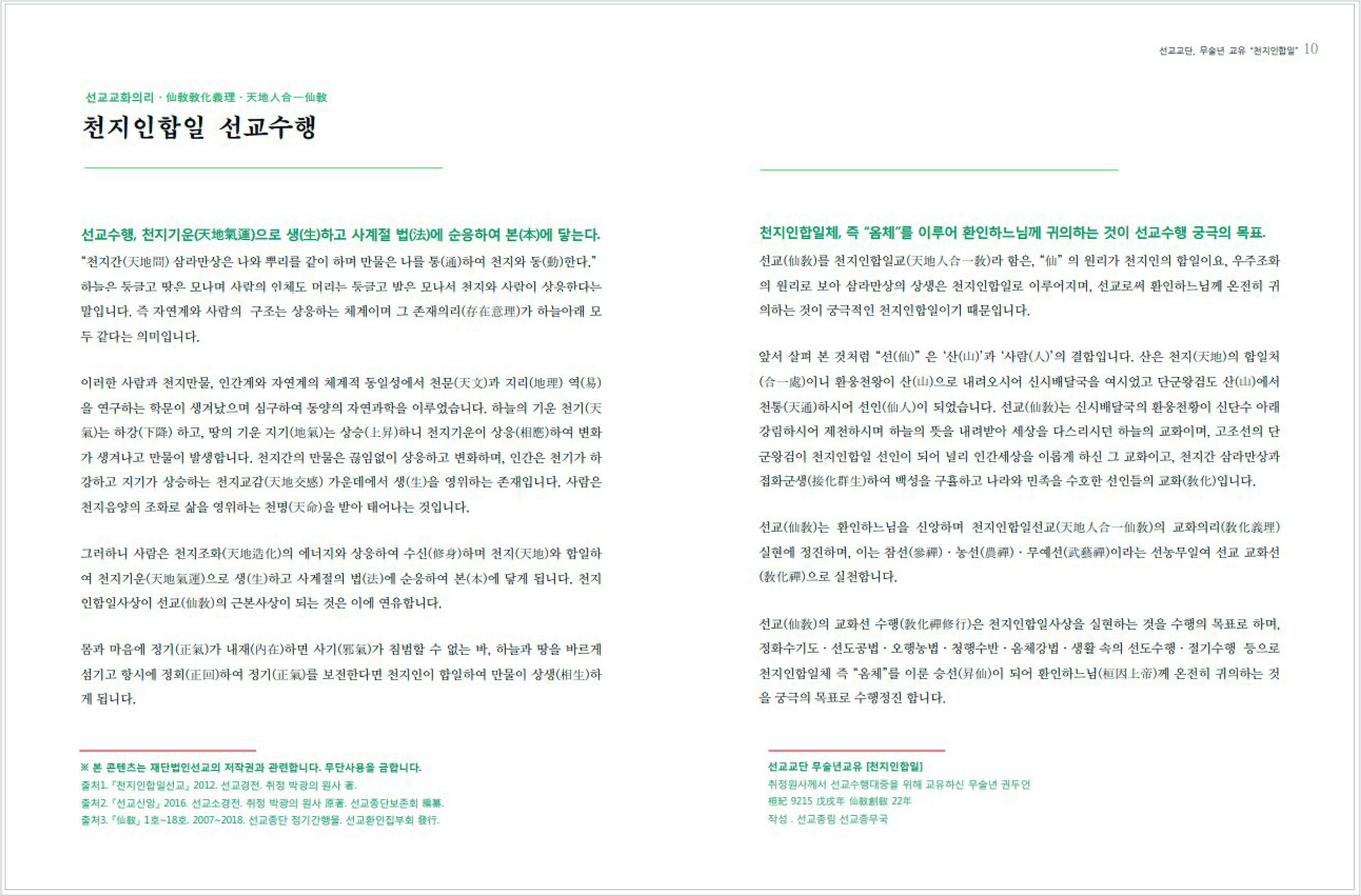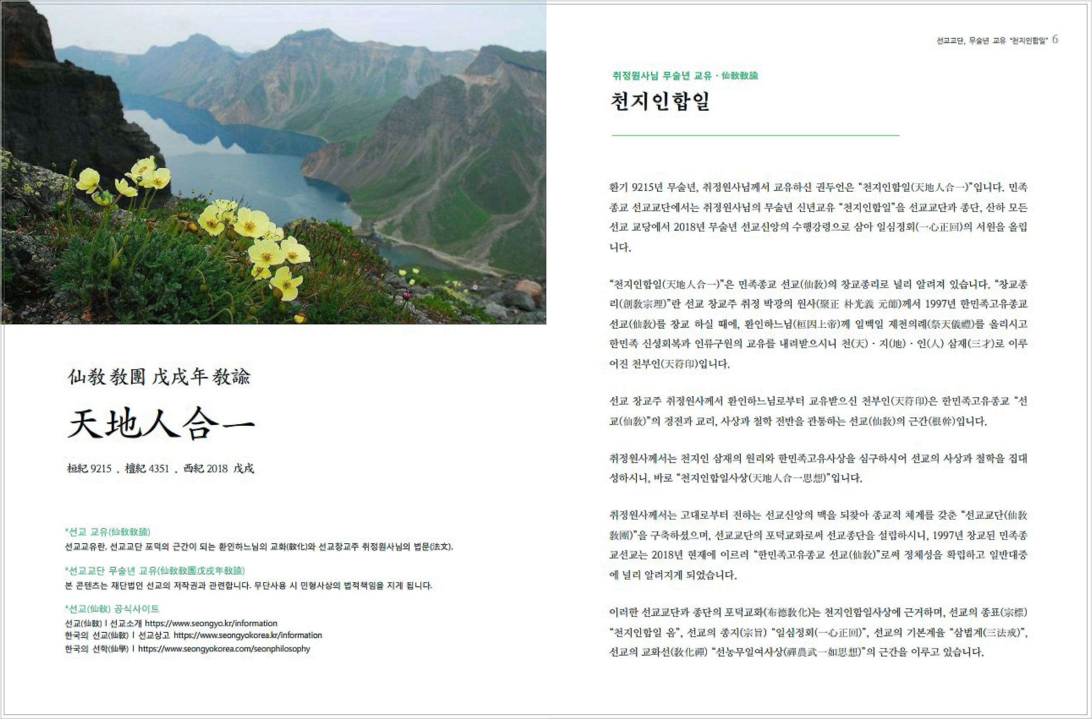※출처 : [선교 정기간행물 [仙敎] 2018년 봄호] _ 선교 창교주 취정원사님 "천지인합일" 교유 _ 국립중앙도서관 연속간행물실