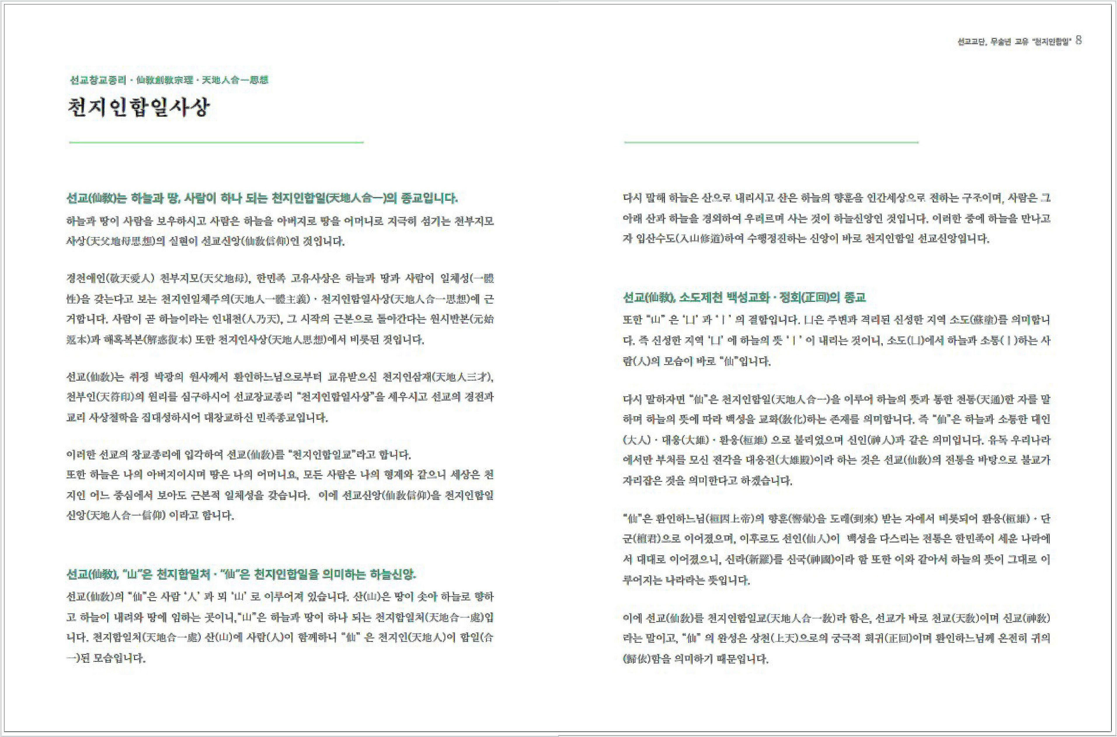 ※출처 : [선교 정기간행물 [仙敎] 2018년 봄호] _ 선교 창교주 취정원사님 "천지인합일 정회사상" 교유 _ 국립중앙도서관 연속간행물실